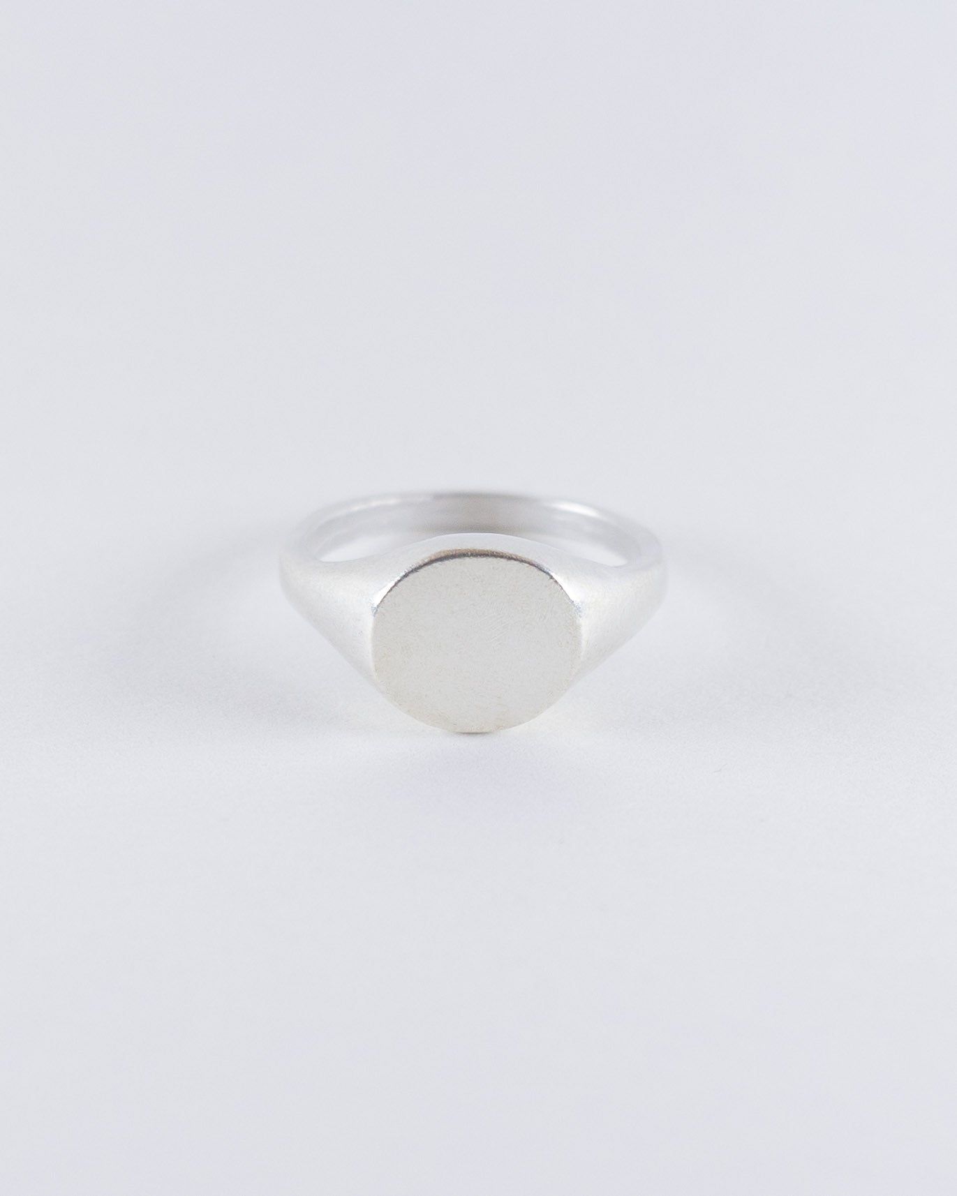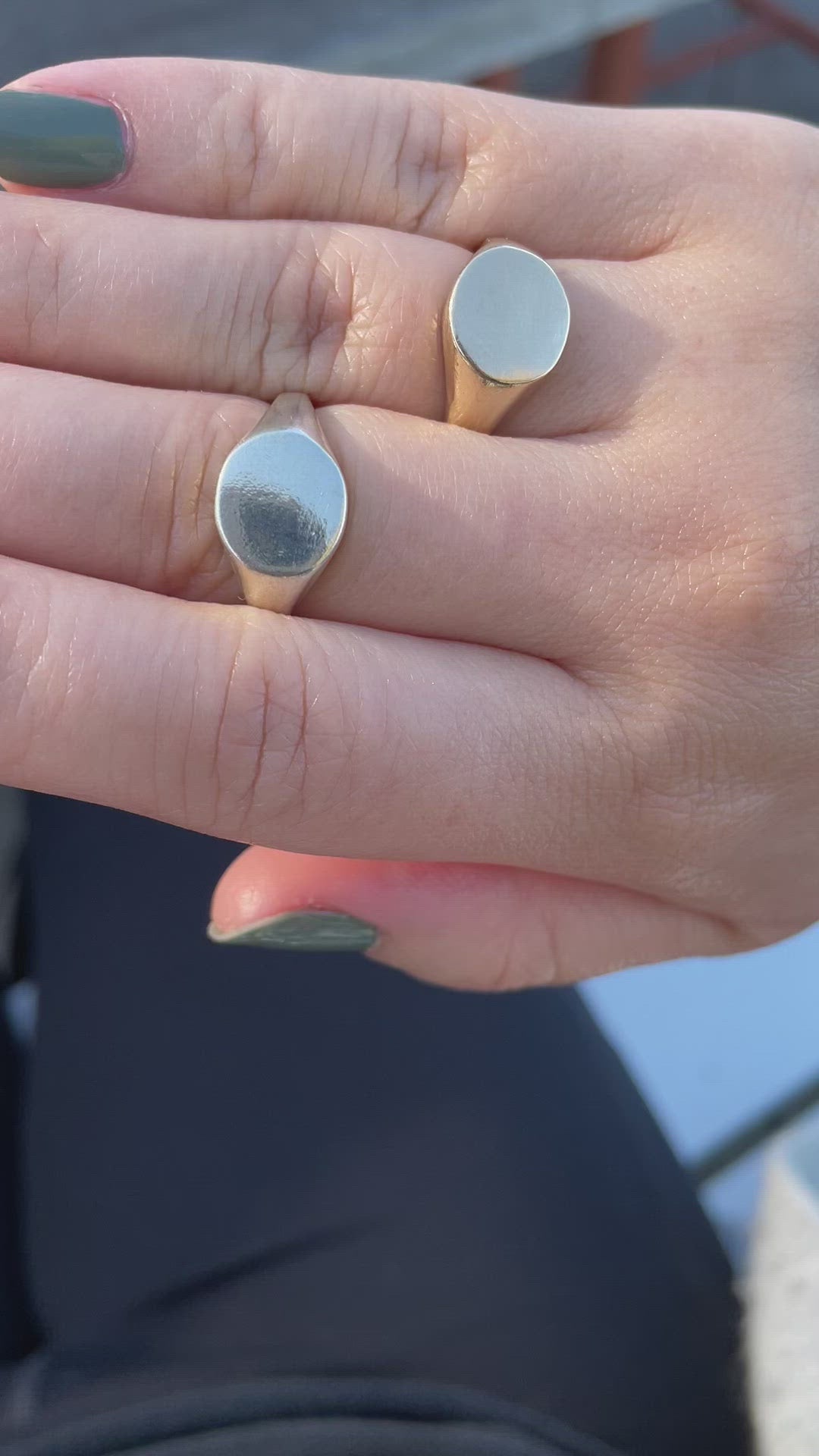 A substantial blank signet ring that adds a beautiful flash to any hand. Signets date back to ancient times across many cultures. They enjoyed a renewed popularity with English nobility, who would wear their house's signet on their pinky rings.